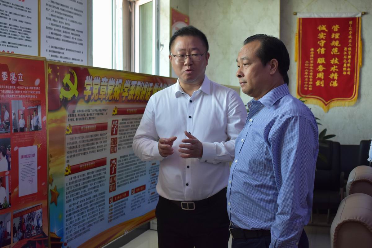 5月24日,市委常委、組織部長劉非到我公司就“兩學一做”學習教育常態化制度化工作開展調研。區委書記吳建波、區委副書記喬夫及區委組織部相關同志陪同調研。