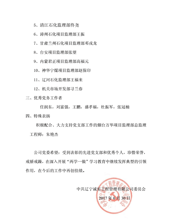 遼寧誠實工程管理有限公司黨委召開《慶祝建黨96周年暨“一優兩先”表彰視頻大會》