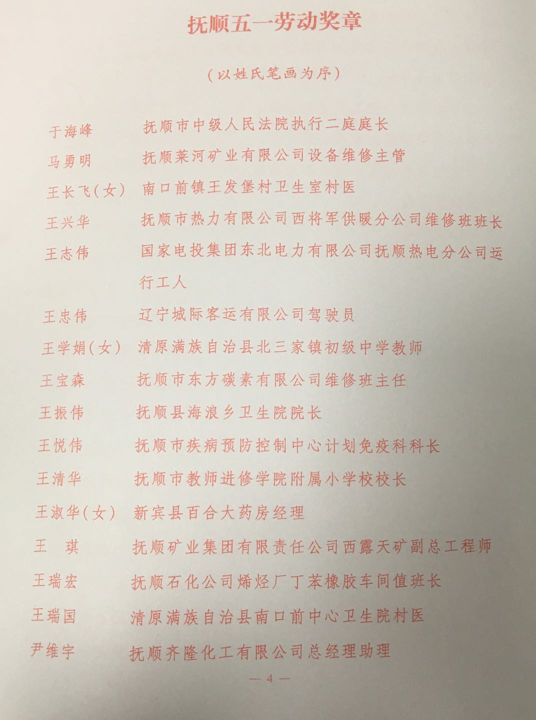 熱烈慶祝我單位任潤東、郭建偉兩位同志榮獲“撫順五一勞動獎章”榮譽稱號