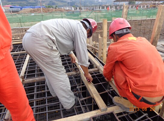 土建監理現場檢查壓縮機廠房筏板基礎鋼筋尺寸